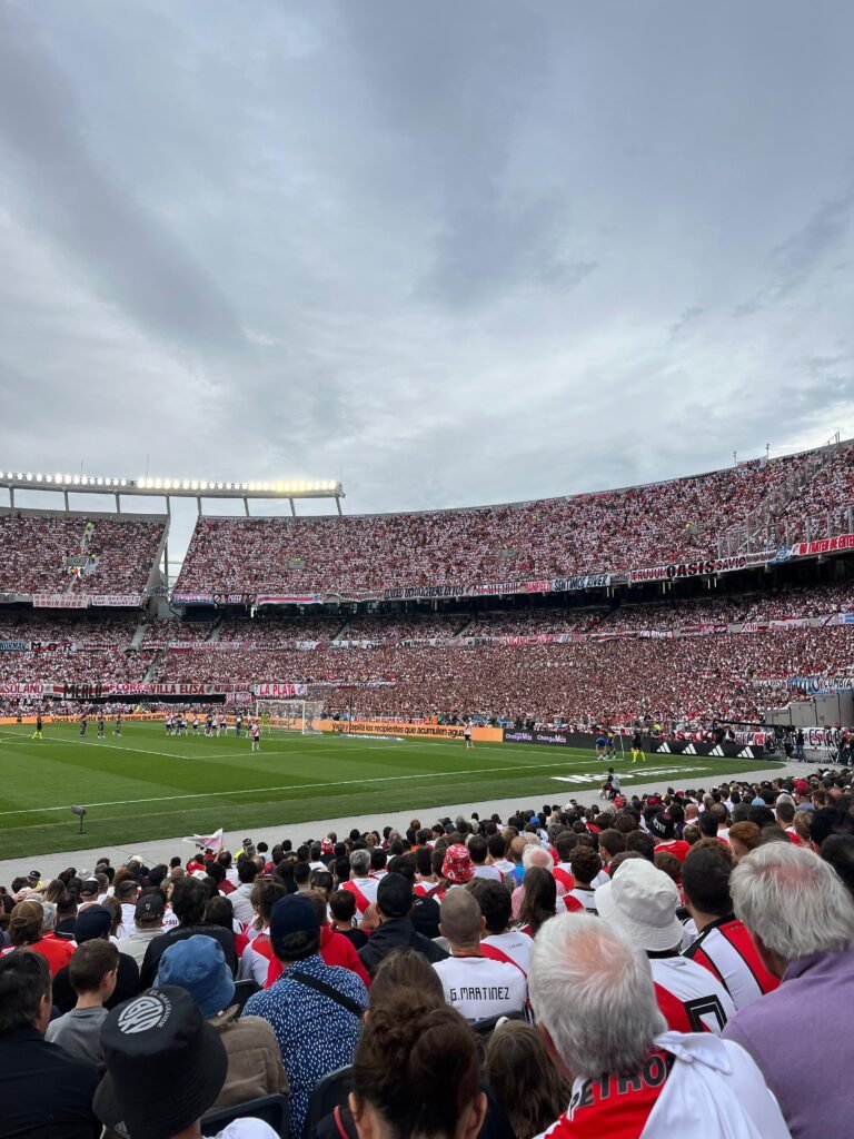 La previa en Núñez fue una locura: calles llenas de camisetas, bombos, banderas gigantes y un ambiente eléctrico que te eriza la piel. Cuando llegamos al estadio, sentimos de inmediato esa energía que hace del Monumental un escenario único.